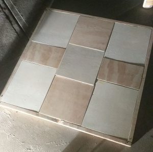 First came building the frame. The entirety of the pad is rested on a sheet of 35″x35″x1/2″ plywood acting as a base, with 1″ strips of 1/2″ plywood going around the sides of the base to act as a frame. Again, 1/2″ plywood was used as spacers between the pads which resulted in a sort of frame for each pad.